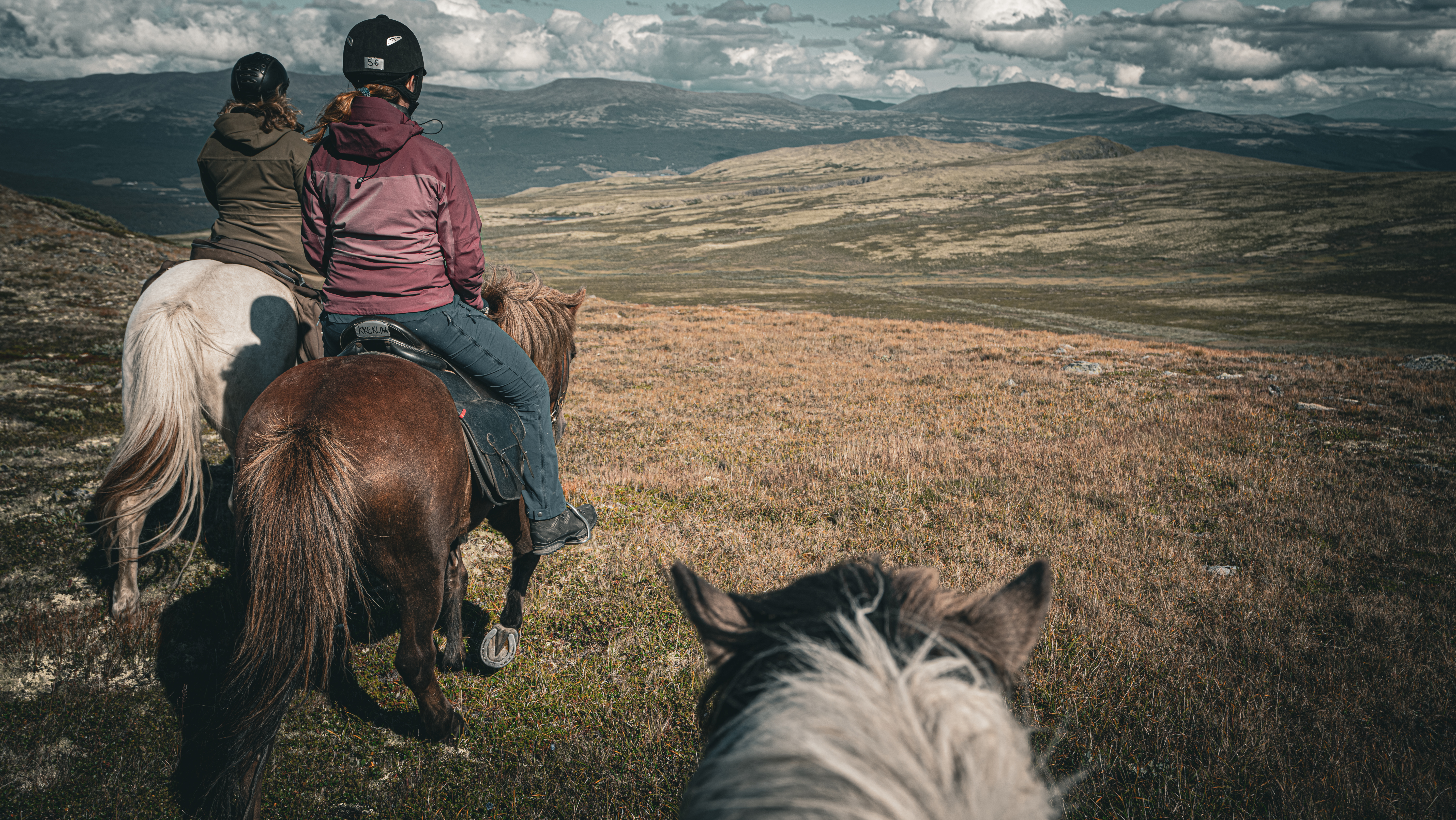 Etter lunsj deler vi ut hester og utstyr til hver enkelt. Vi får en instruksjon før vi rir ut på en ettermiddagstur for å bli kjent med hestene og hverandre.
